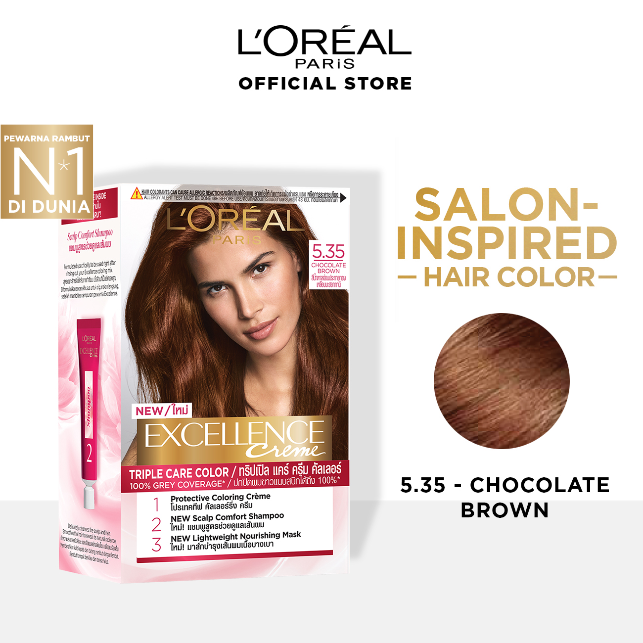 L Oreal Paris Excellence Creme Hair Color 5 35 Chocolate Brown Pewarna Rambut Permanent Shopee Indonesia